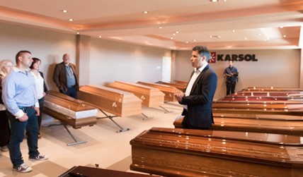 Кілька слів про саму компанію ТОВ «Кarsol LTD». Заснована вона була 2003-го, і з того часу перетворилося на найбільшу компанію – виробника трун та похоронних аксесуарів у Центральній Європі. Сьогодні це справді процвітаюча компанія зі ста відсотками угорської власності, що експортує похоронну продукцію до 16 країн Європи і має величезний вплив на тенденцію та якість ритуальної продукції не лише в Європі, але й у світі загалом завдяки міжнародним виставкам похоронної індустрії, де Карсол є постійним учасником на всіх континентах. Завдяки власній професійній технології та запатентованій лінії виробництва LEAN, завод виробляє асортимент продукції світового класу.