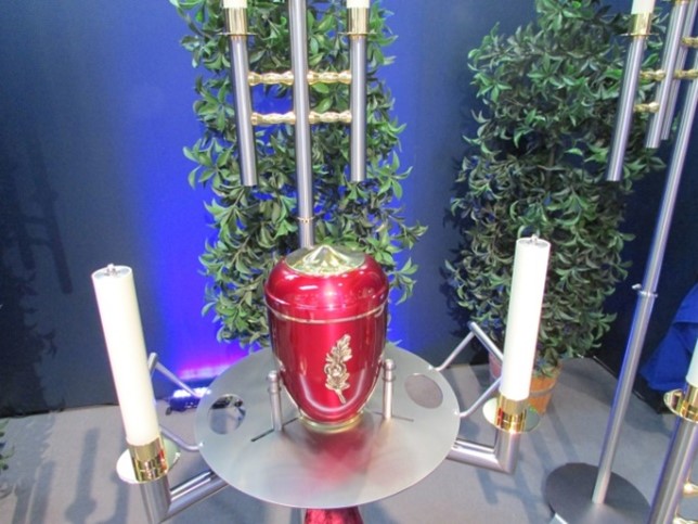 Індустрія всього необхідного для колумбарію – окрема сторінка виставки. Різні панно і скляні картини, що не б’ються з видами природи, портретами, капсулами з флешками, електронними базами відео та звуку, блискучими урнами яскравих кольорів тощо.