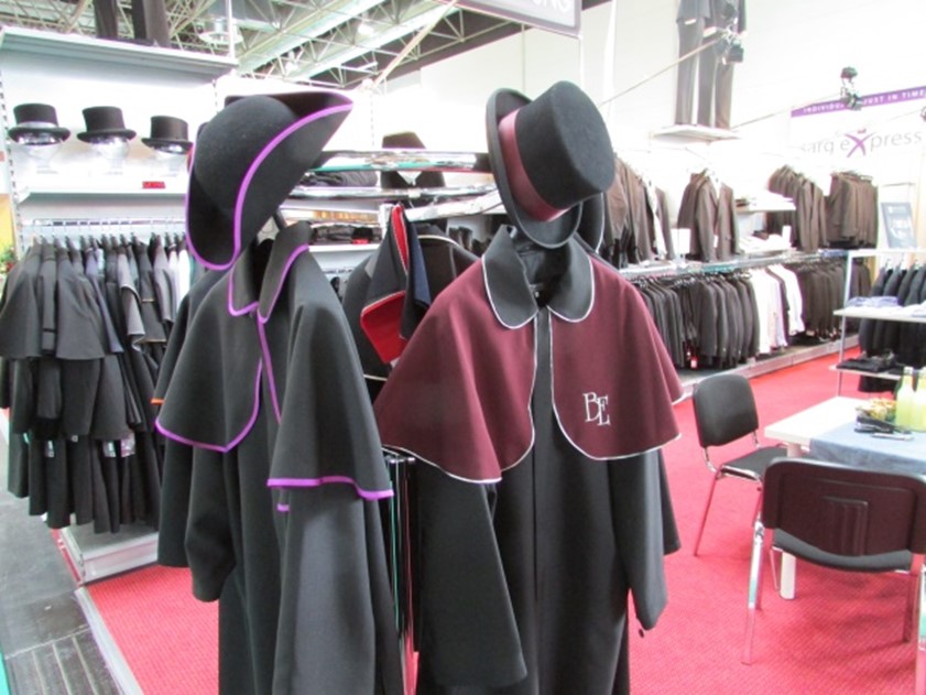І чи не найширше представлена в рамках виставкового форуму Парижа текстильна продукція ритуального спрямування. Найперше – все для трун і саркофагів. Білі, рожеві, блакитні, світло-сірі, сріблясті, блискучі і матові, м’які і пухнасті види білизни виглядають радше як для живих. Все створено з любов’ю і неабиякою майстерністю. Тут же ритуальний одяг, переважно для жінок, з вуаллю і відповідними аксесуарами та взуттям, покривала, форма одягу персоналу ритуального бюро – від робітника до виконавця плану похорону. Безліч брошок і значків, специфічна ювелірка, розмаїття капелюхів – від класичних циліндрів, до фуражок і беретів з логотипом компанії.