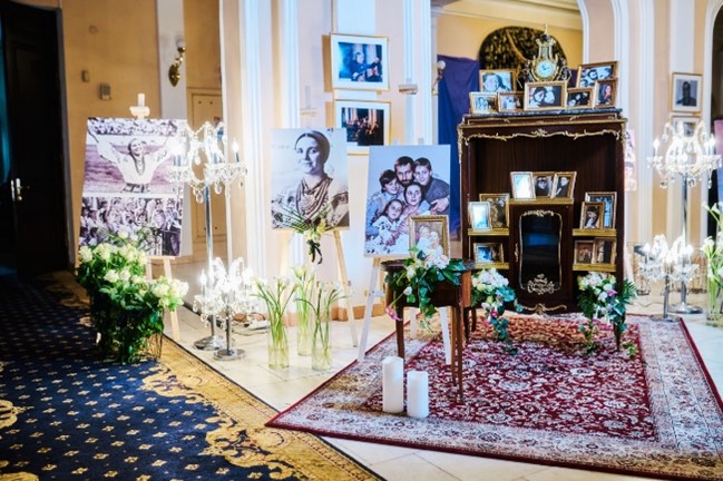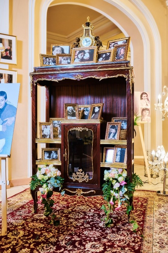 Секретер ручної роботи від французьких дизайнерів відкриє експозицію світлин різних часів, здійснивши екскурс у минуле: спогади дитячих років, етапи навчання і становлення, сім’я, професія, незабутні подорожі, миттєвості свят і ювілеїв. Вінчатиме експозицію старовинний годинник від швейцарських майстрів, нагадуючи останню хвилину життя на порозі вічності.
