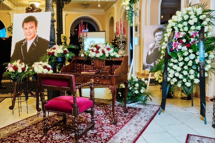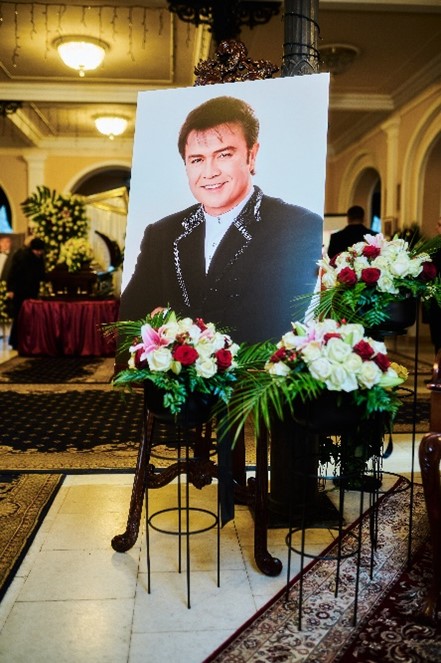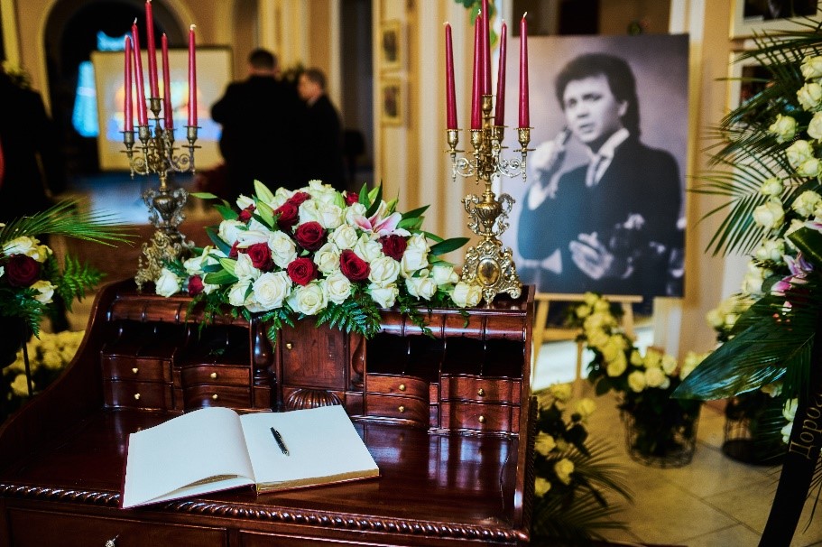 Національна Філармонія зустріла гостей церемонії величними світлинами його життєвого шляху, експозицією «Літопис життя» зі сценічними і студійними миттєвостями, особистими речами і сімейними фото, рідним мікрофоном і нотами, морем квітів і можливістю лишити свій спогад, присвяту, подяку чи просто написати кілька теплих слів вдячності у книзі пам’яті «Людина епохи».