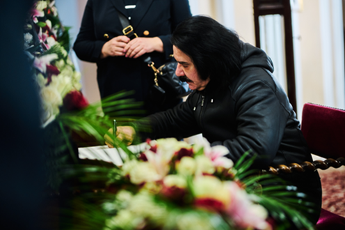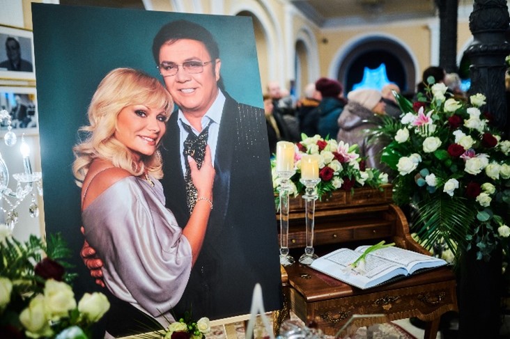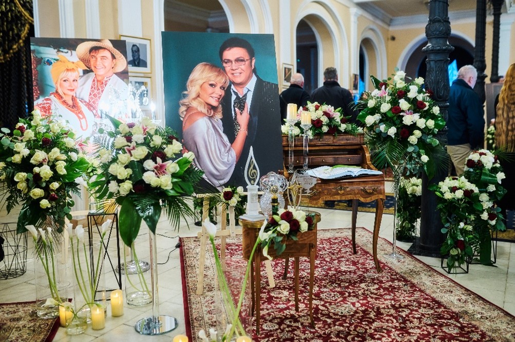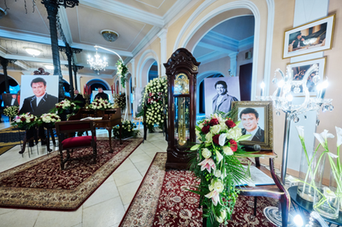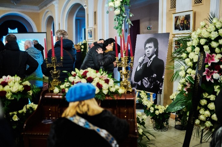 «Прощання з народним артистом України розпочалося у п’ятницю вранці у вузькому колі в Михайлівському Золотоверхому монастирі», – розповідає власниця і керівник ритуальної фірми «Петро Великий» Алла Ландар, чия компанія організовувала процесію прощання, президент Міжнародної асоціації професіоналів похоронної справи, Національний член від України у Всесвітній Федерації Похоронних Виконавців (FIAT-IFTA), член Федерації Ради директорів Похоронних домів (NFDA, США), Заслужений працівник сфери послуг України. https://tsn.ua/