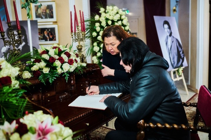 Одним із перших прийшов попрощатися той, хто завжди був поруч – друг і колега по сцені Павло Зібров. Прийшли віддати останню шану і залишити осанні слова подяки у книзі пам’яті співаки Павло Зібров, Тарас Петриненко, Алла Кудлай, Іво Бобул, ведучий Петро Мага, актори Ольга Сумська, Василь Ілащук, Дмитро Лінартович. Вшанували пам'ять в.о. міністра культури Ростислав Карандєєв, композитор Олександр Злотник, кінопродюсер Микола Княжицький.